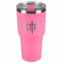 Lincoln Outfitters “Faith Over Fear” 30 oz. Religious Tumbler, Pink – 89-635-0204 – Tumblers