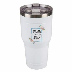 Lincoln Outfitters “Faith Over Fear” 30 oz. Religious Tumbler, White – 89-643-0204 – Tumblers